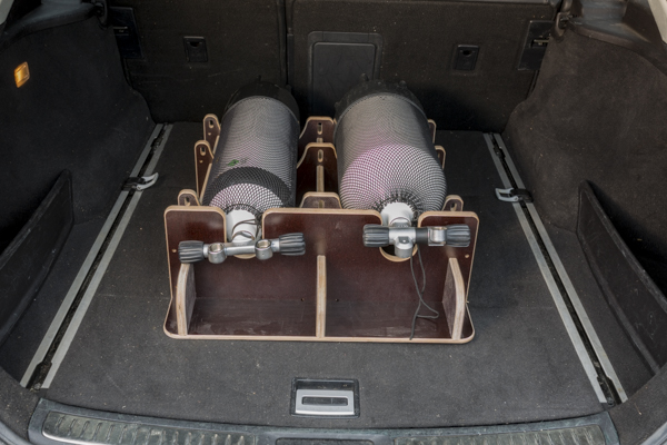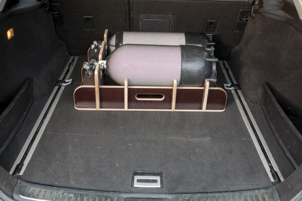 Kein lästiges hin und her Rollen der Tauchflaschen mehr. Kein Verkeilen hinter den Sitzen. Mit unserem "Holder" Bleibt die Tauchflasche da, wo sie hingehört.