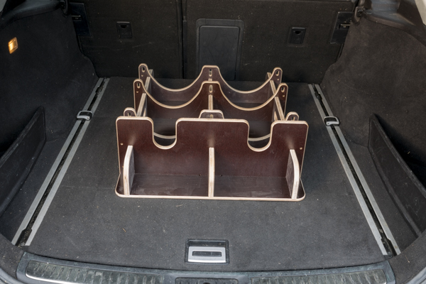 Unser Holder kann im Kofferraum nach den Regeln der StVO verzurrt werden.