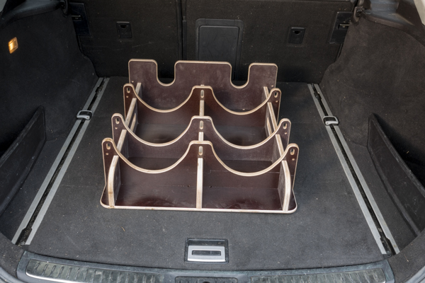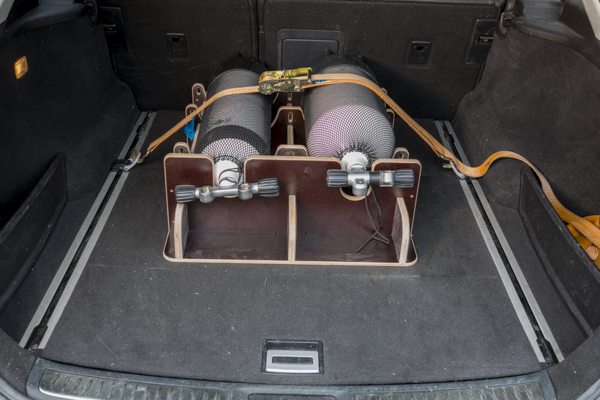 Unser Holder kann im Kofferraum nach den Regeln der StVO verzurrt werden.
